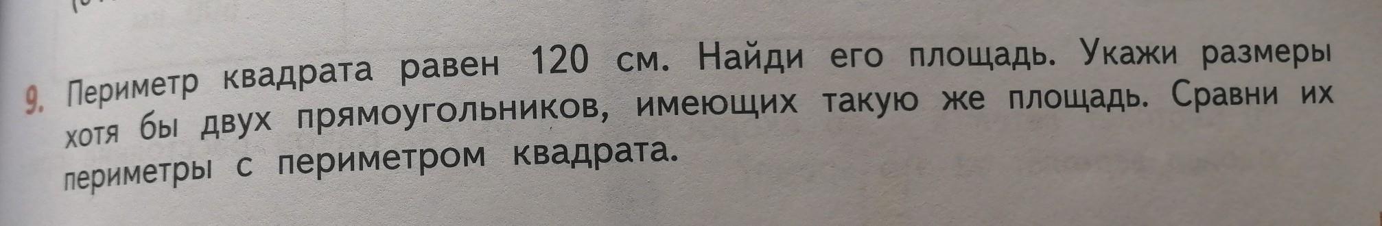 45см и 20 см, 60 см и 15 см стороны прямоугольников.Периметры прямоугольников больше периметра квадрата.