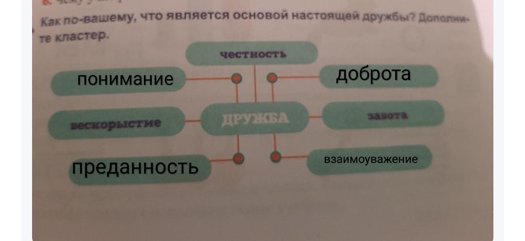 Как по-вашему, что является основой настоящей дружбы? Дополните кластер.