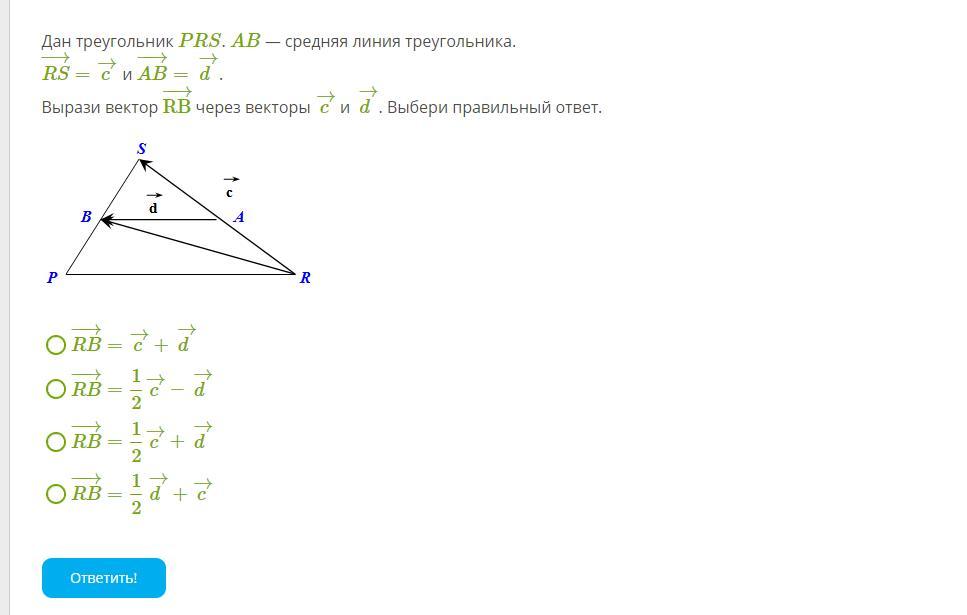 \overline {RB} = \dfrac{1}{2} \overline c + \overline d