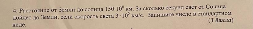 t=150*10⁶: 3*10⁵= (150:3) * (10⁶:10⁵) = 50 * (10⁶⁻⁵) = 50*10=500 c=5*10² cекунд