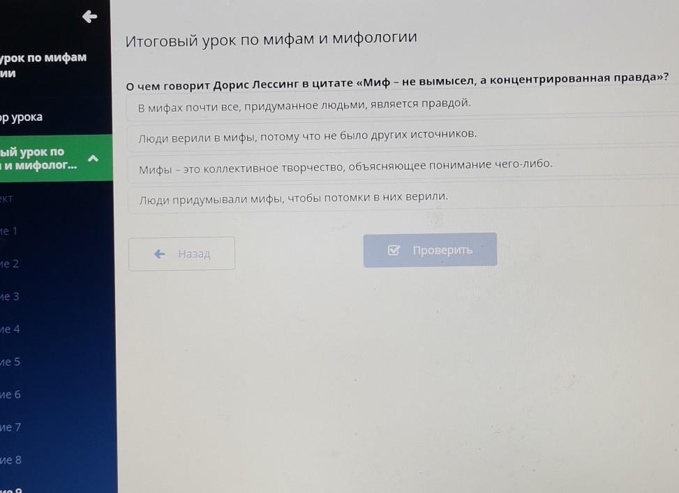 О чем говорит Дорис Лессинг в цитате «Миф - не вымысел, а концентрированная правда»?