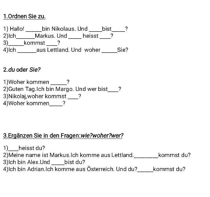 1) 1. Ich bin Nikolaus. Und woher bist du?