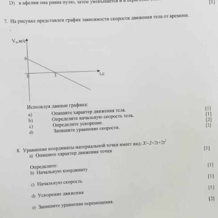 7) a) равнозамедленно до 3 с, после равноускоренно в обратном направлении