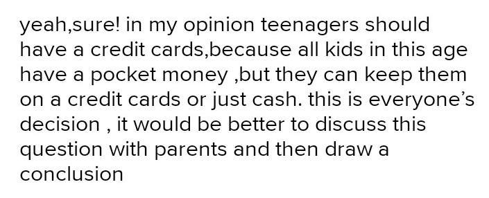 Вот эссе по тему teenagers should have credit cards если неправильно извините