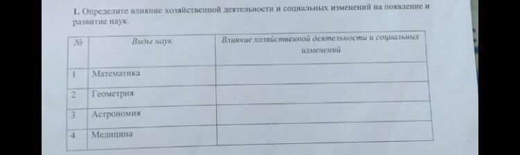 определите влияние хозяйственной деятельности и социальных изменений на появление и развитие наук