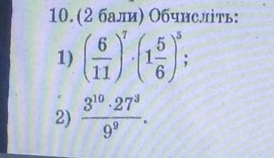 Ответ: 1) здесь 1 5/6=11/6, возводим числитель и знаменатель в степень за скобкой, (6^7*11^5)/(11^7*6^5)=36/121.