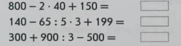 Первый ответ неверен. Должно быть 870. Второй ответ тоже. Потому что 140 - 65:5*3 + 199 это не 60. Здесь второй вычитающийся операнд равен 39 и только он тянет в минус, а положительных операндов (140+199) аж 339, так что уж никак 60 не получится, если от 339 отнять 39. И лишь третий ответ верный 100. Это похоже на попытку подвести школьника под двойку.