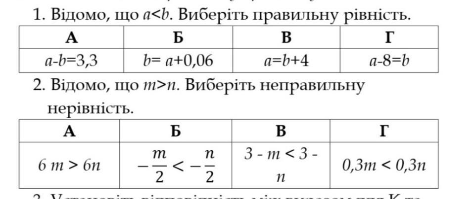 2) якщо m>n, то при множенні обох частин нерівності на додатне число, знак нерівності не міняється. У варіанті Г знак змінено, тому він є неправильним