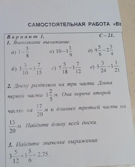 1 целая 2/5+2 целых 1/4+ 3/4= 4 целых 2/5 = 4,4 м длина доски.