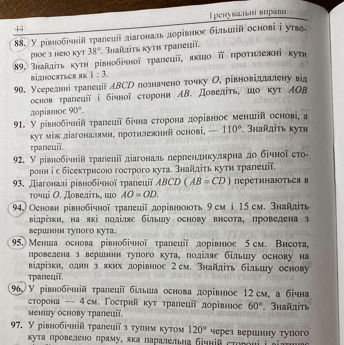 Углы при бОльшем основании равны по 45 градусов,а при меньшем
