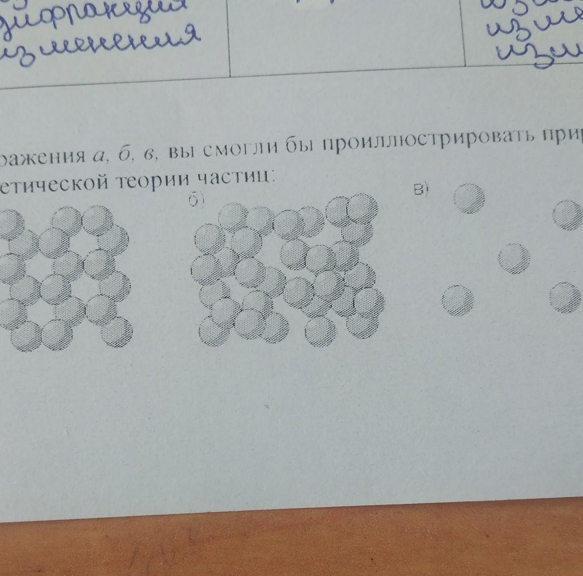 2. Как используя изображения а, б, в, вы смогли бы проиллюстрировать природные Явления, согласно Кинетической теории частиц.