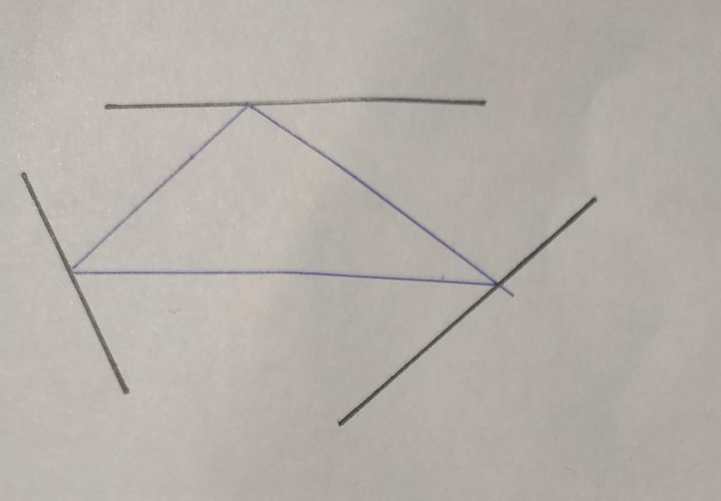 Начерти треугольник и проведи через каждую вершину прямую, параллельную противоположной стороне. Ответь на вопрос: "Сколько параллельных прямых можно провести через точку, не лежащую на данной прямой?"