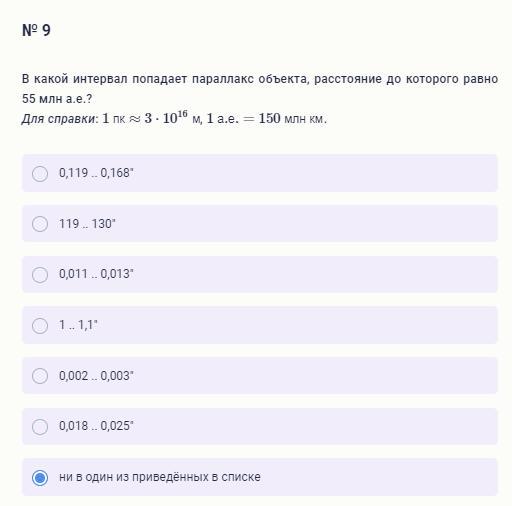 Решение: найдём параллакс объекта по формуле расстояния р= 1/R.