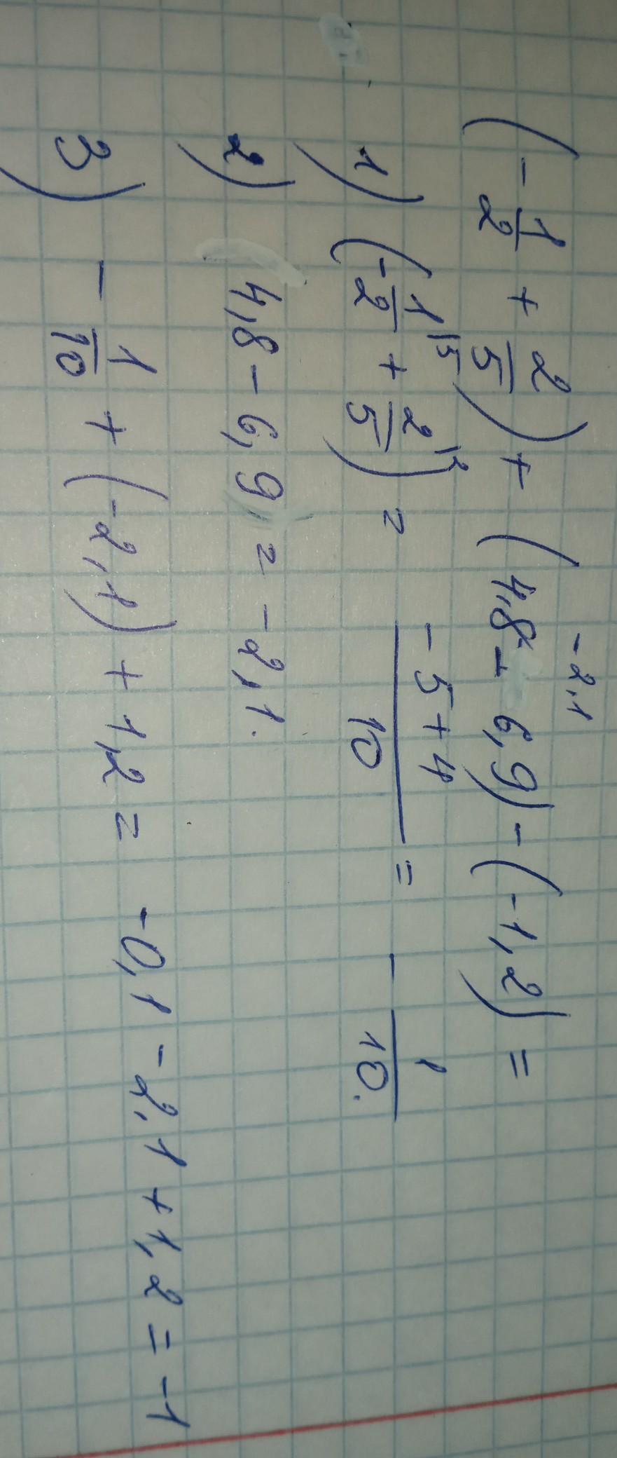 = (-0,5 + 0,4) + (-2,1) + 1,2 = -0,1 - 2,1 + 1,2 = -1