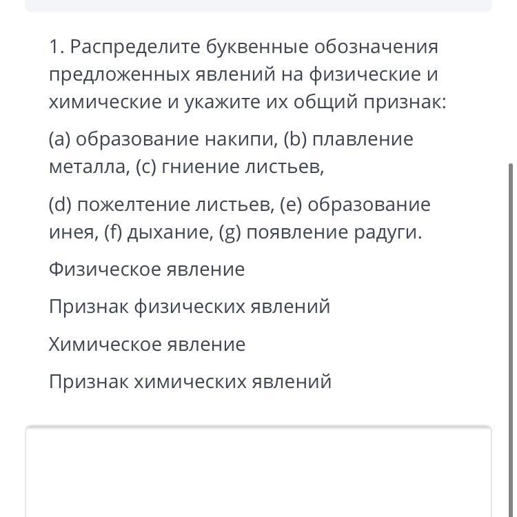 Химическое явление: Образование накипи (a), гниение листьев (c), пожелтение листьев (d), дыхание (g).