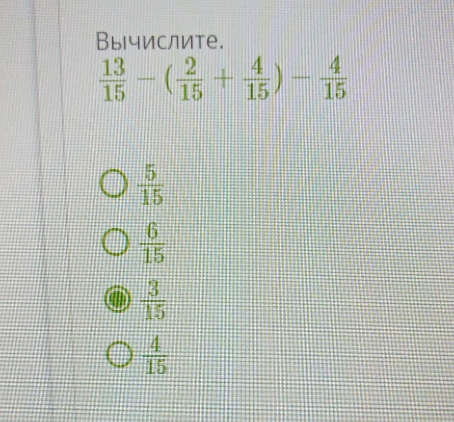 3)7/15-4/15=3/15