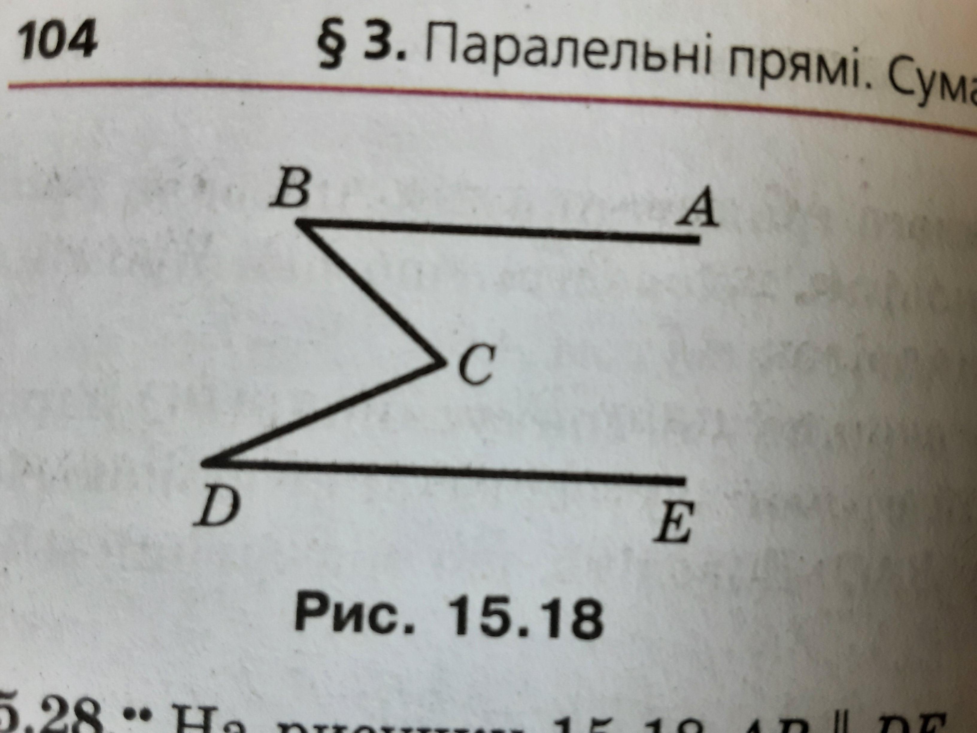 На рисунку 15.18 АВ || DE. Доведіть, що кут BCD= куту ABC + куту CDE. Розв'язання 7 класу))