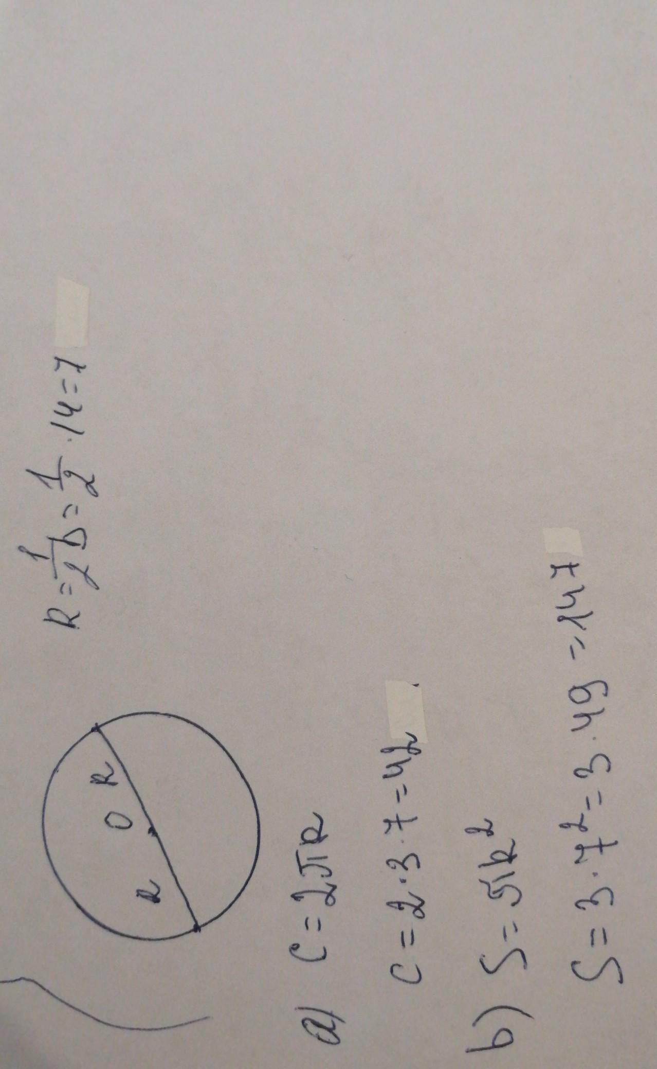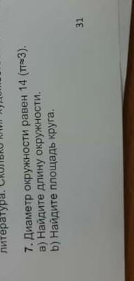 7. Диаметр окружности равен 14 (73). а) Найдите длину окружности, b) Найдите площадь круга.