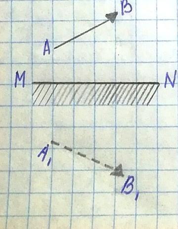 на рисунку зображено дзеркало MN та відрізок AB. Побудуйте зображення цього відрізка у дзеркалі та охарактеризуйте його