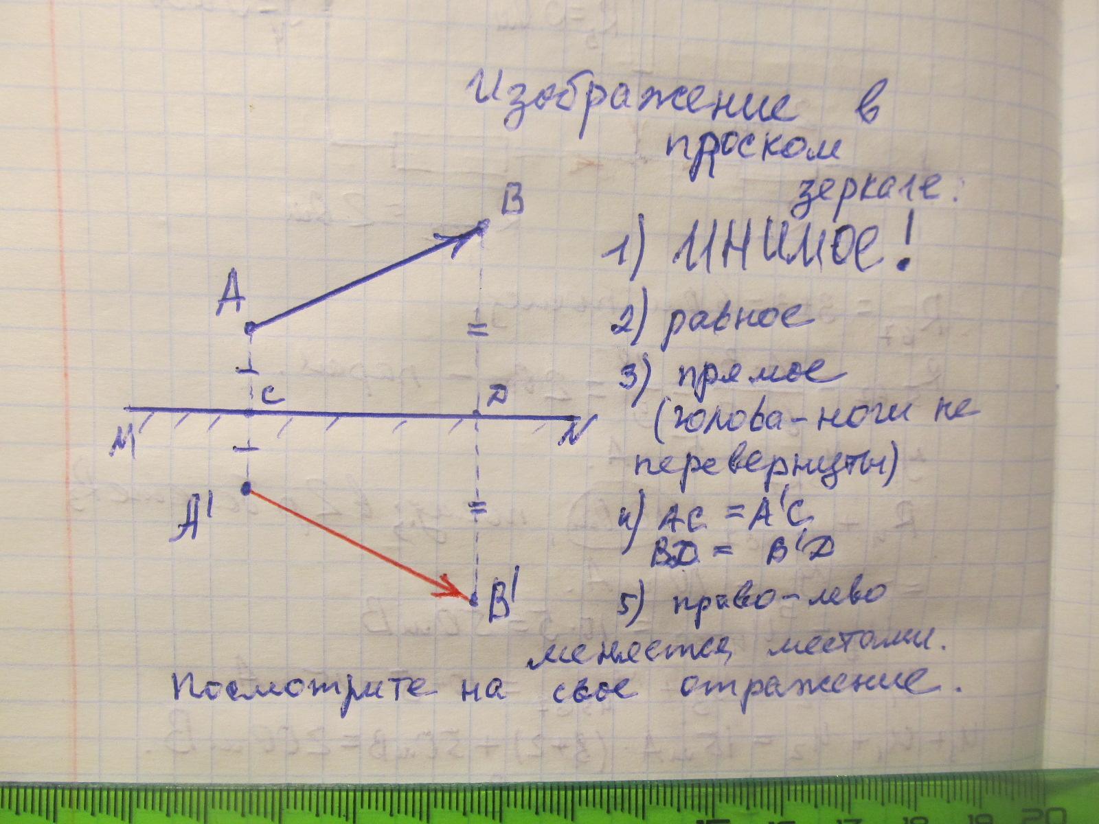 Зображення AB в плоскому дзеркалі та A1B1 є симетричними відносно поверхні дзеркала, то :