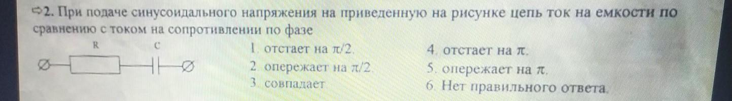 При подаче синусоидального напряжения на приведенную на рисунке цепь ток на емкости по сравнению с током на сопротивлении по фазе