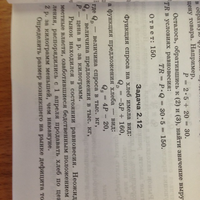 К примеру если хлеб стоит 10 руб, то дефицит будет 190 тыс. кг. хлеба.