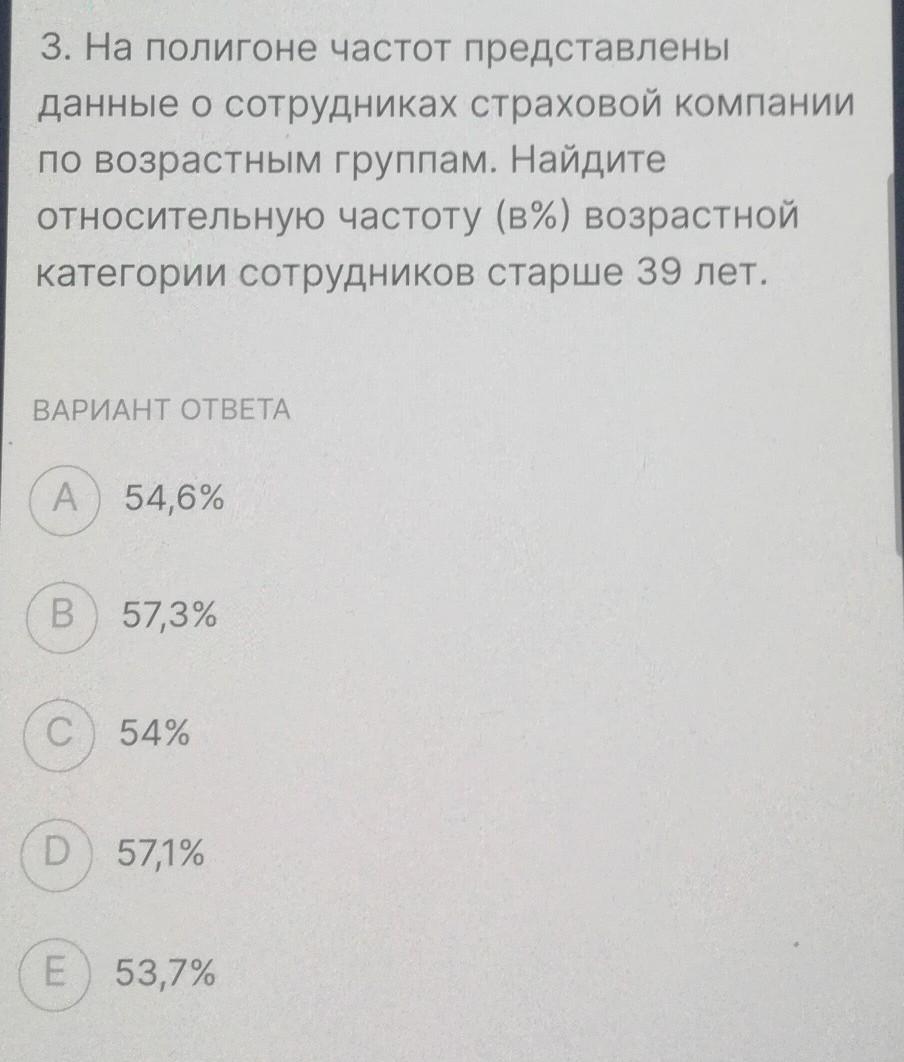 Найдем относительную частоту (в%) возрастной категории сотрудников старше 39 лет: