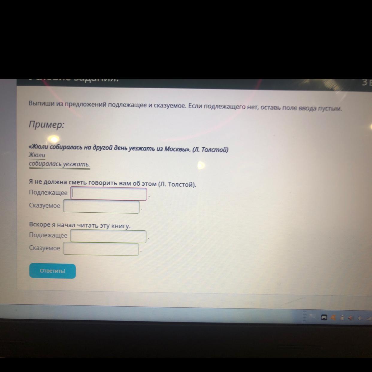 сказуемое:начал читать