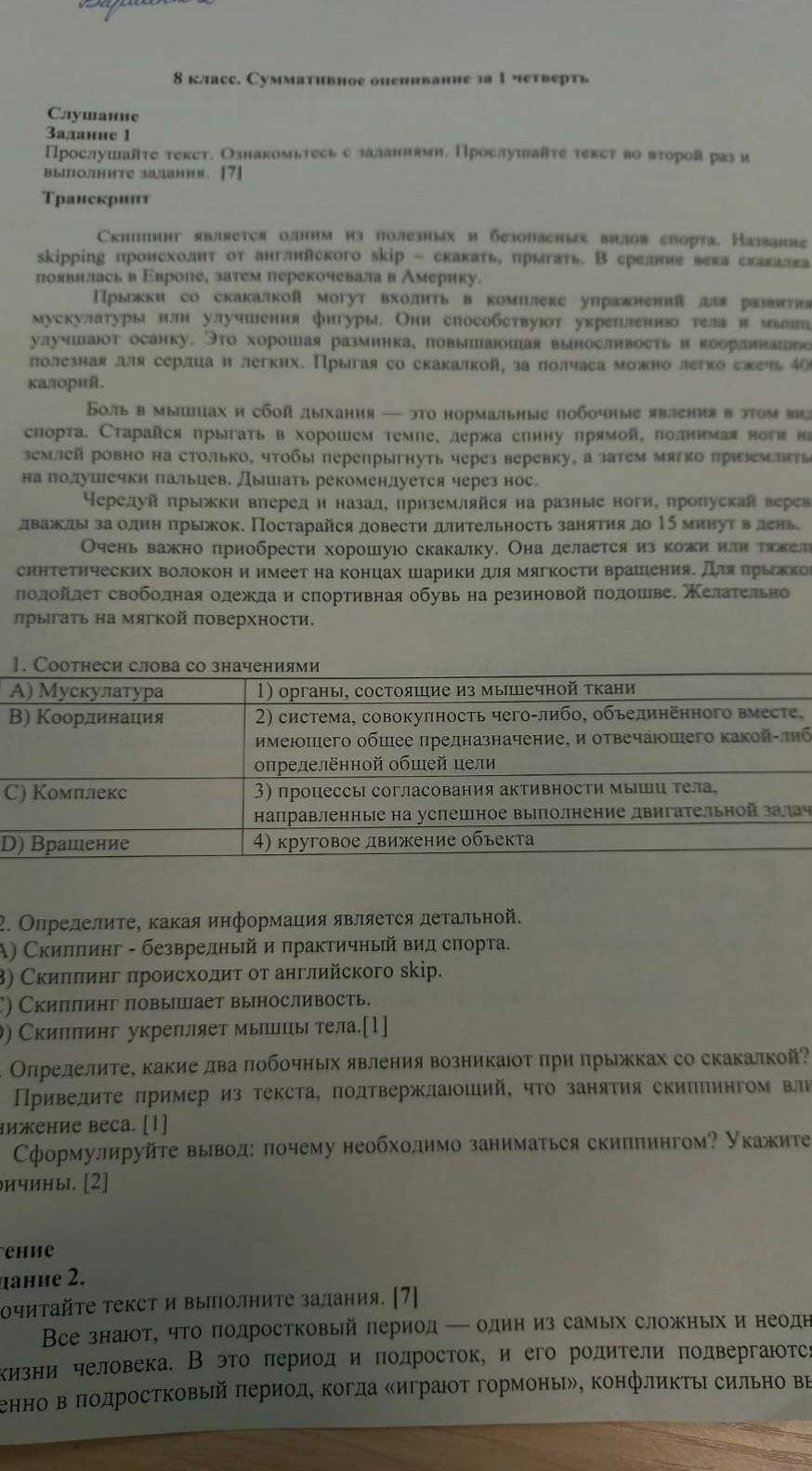 зад.4 прыгая со скакалкой, за полчаса можно легко сжечь 400 калорий. зад.5 скиппинг является одним из полезных и безопасных видов спорта. занятие скиппингом способствует укреплению тела и мышц, улучшает осанку, повышает выносливость и координацию, полезно для сердца и легких