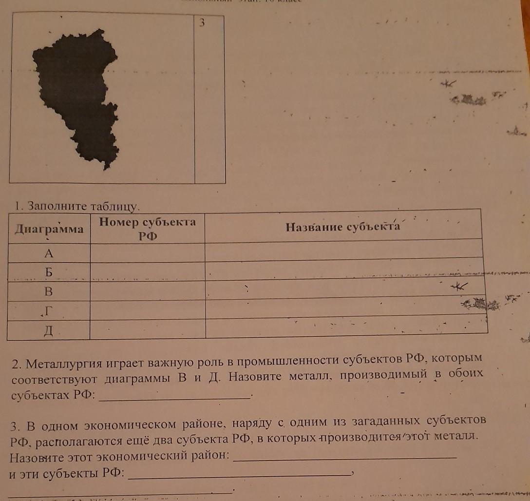 Ниже представлены данные о структуре обрабатывающей промышленности 5 субъектов Российской Федерации по видам экономической деятельности. Пользуясь этими данными соотнесите диаграммы с контурами субъектов экономики в которых они описывают, и выполните дополнительные задания.