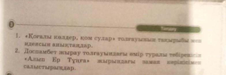 Қазақ әдебиеті 6 сынып 3тапсырма 1. «Қоғалы көлдер қос сулар» толғауының тақырыбы мен идеясын анықтаңдар.