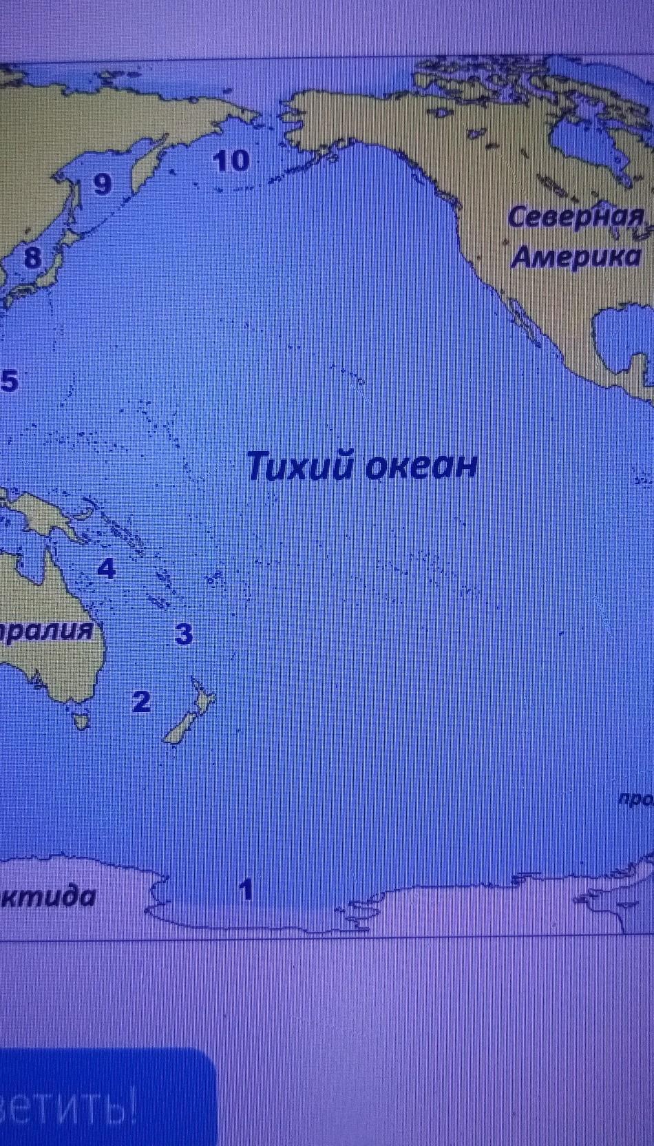 Большая часть морей находится в западной части Тихого океана. Какими цифрами на карте обозначены: Охотское море Южно-Китайское море