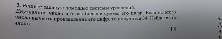 Двухзначное число в 6 раз больше суммы его цифр.Если из этого числа вычесть произведение его цифр , то получится 34.Найдите это число
