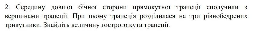 < ADM= < AMD , или 180o-3?= 2? , откуда находим, что ? = 36o . Следовательно, < ADC = 2? = 72o .