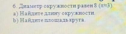 диаметр окружности равен 8 (П=3) a) найдите длину окружности b) найдите площадь круга