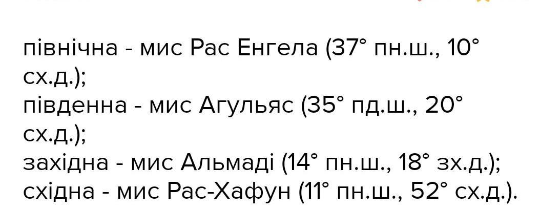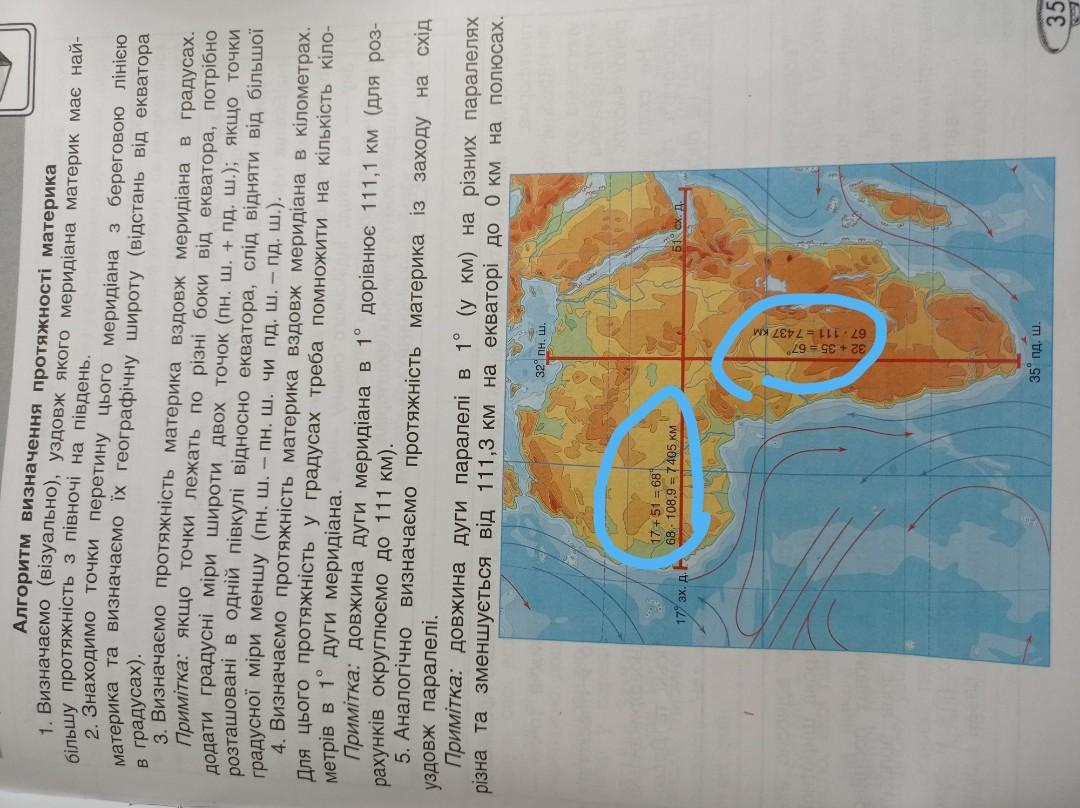 Обчисли, яка максимальна протяжність Африки в градусах та кілометрах з півночі на південь із заходу на схід (способи ви- значення протяжності обери самостійно. Свій вибір обгрунтуй).