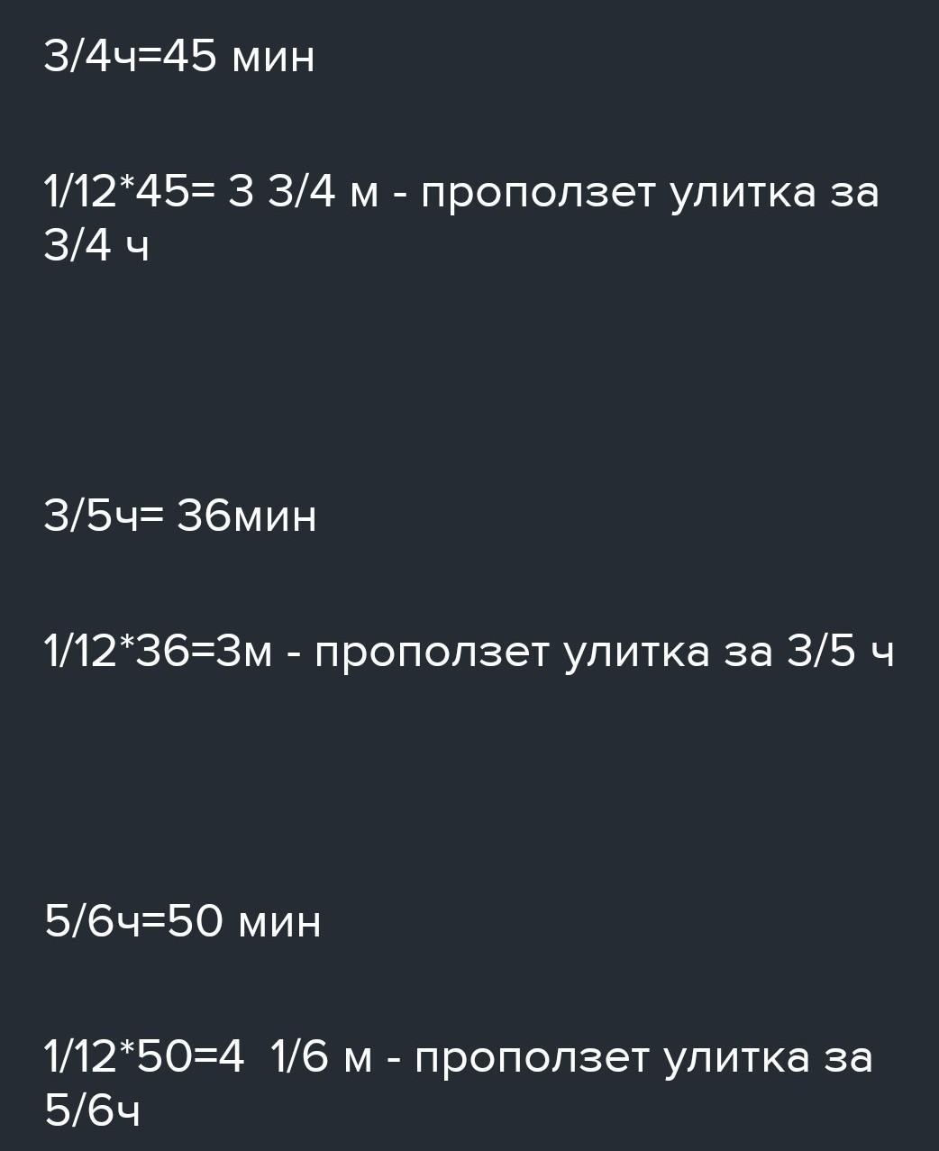 5/6 ·3/10=1/(2·2)=1/4=0,25 км проползёт улитка за 5/6 ч.