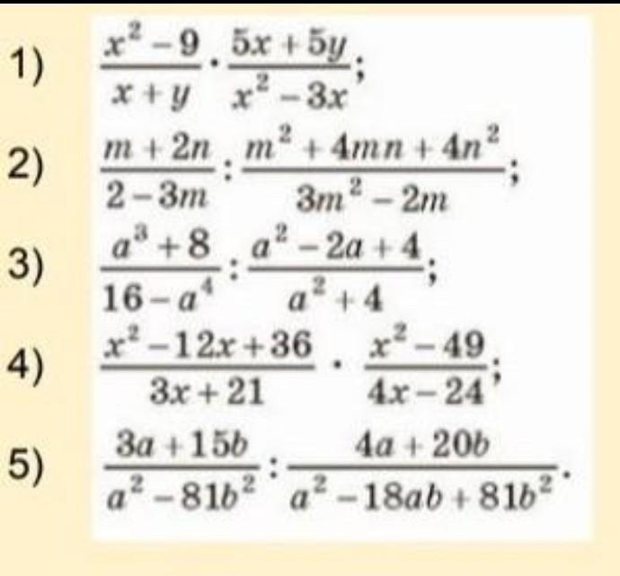 5)3(a+5b)/(a-9b)(a+9b) * (a-9b)2/4(a+5b) = 3/a+9b * a-9b/4 = 3(a-9b)/4(a+9b)