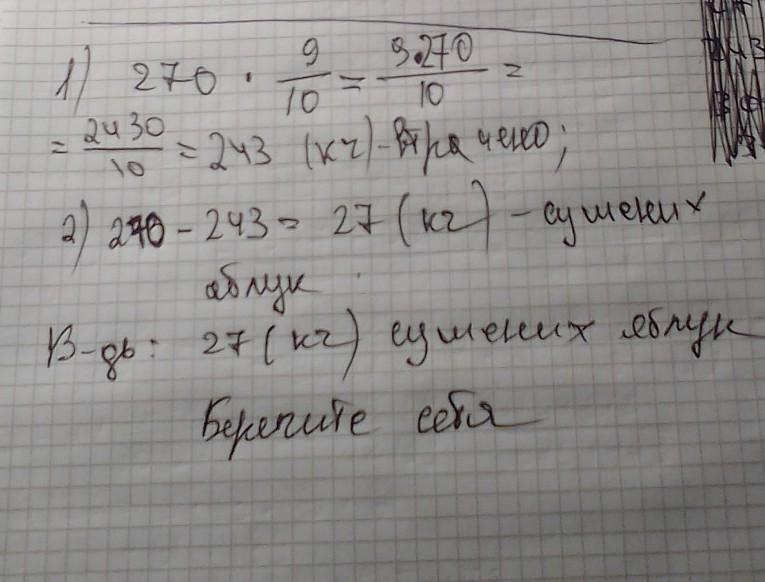 2) 270 - 243= 27 (кг) - сушених яблук.