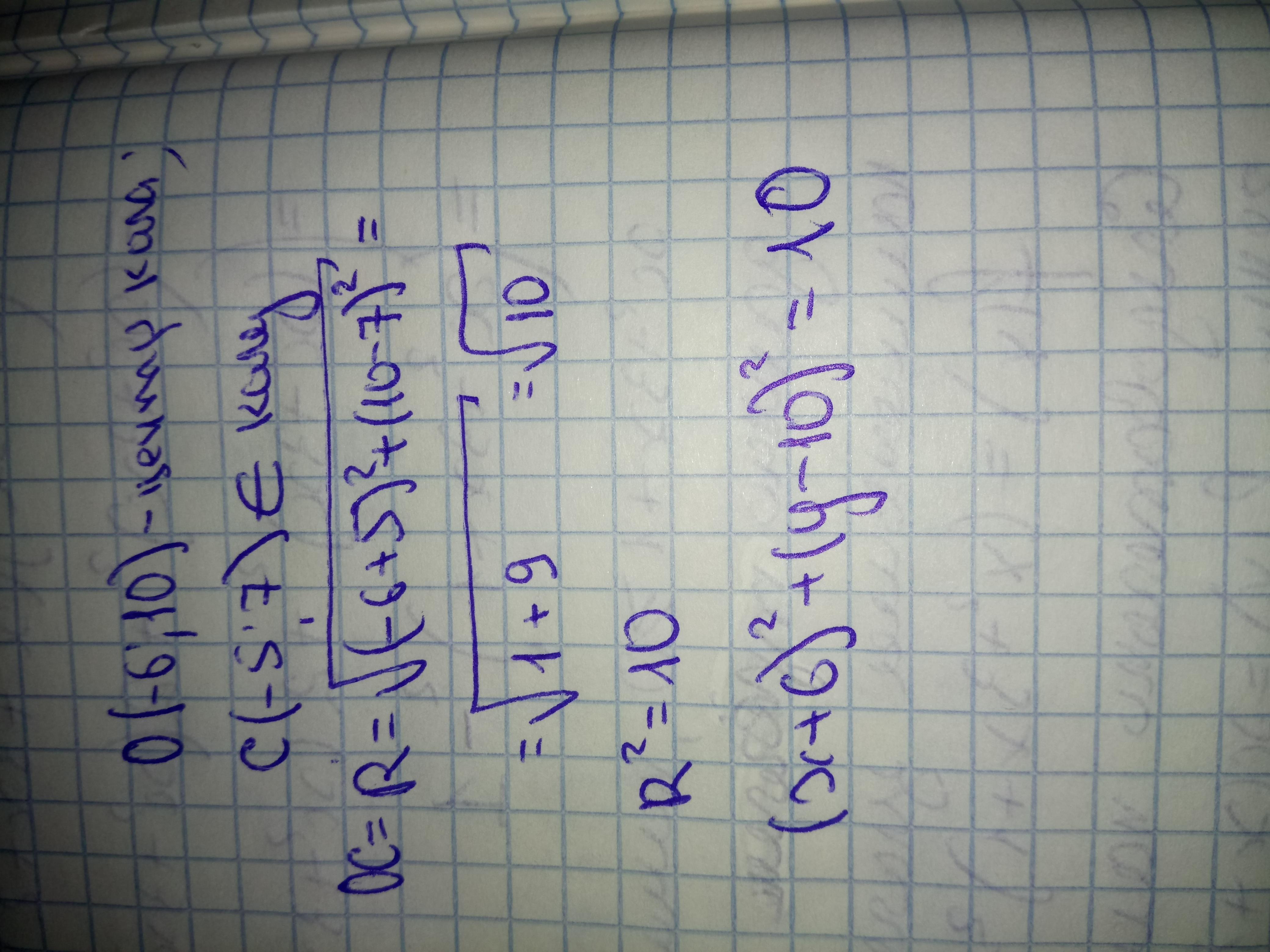 Складіть рівняння кола з центром у точці О(-6; 10), яке проходить через точку С(-5;7)