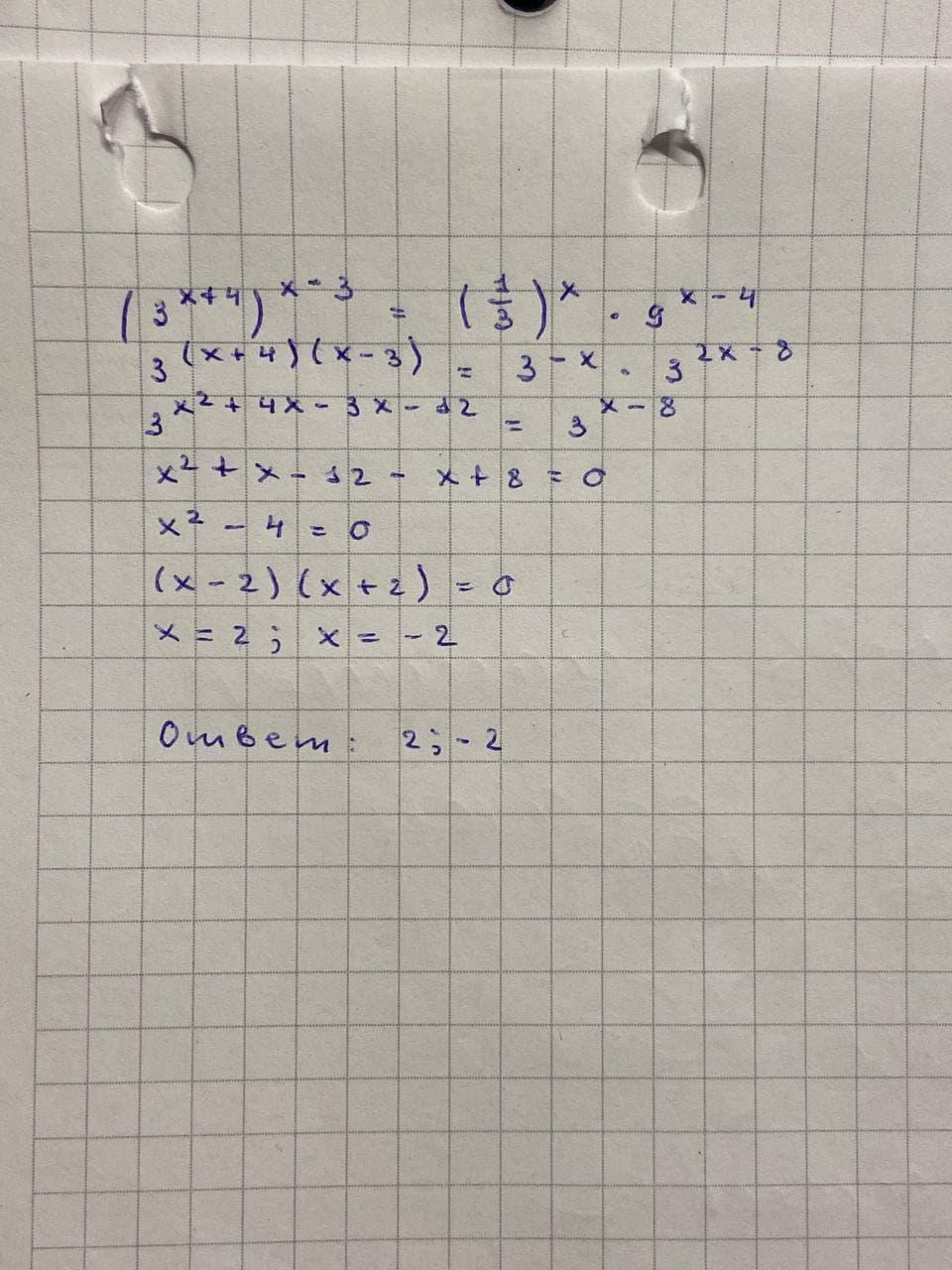 справа 3^(-x)*3^(2*(x-4))=3^(-x+2x-8)=3^(x-8)