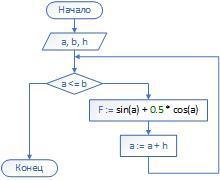 отрезке [a, b] с шагом h. Нужно составить блок схему