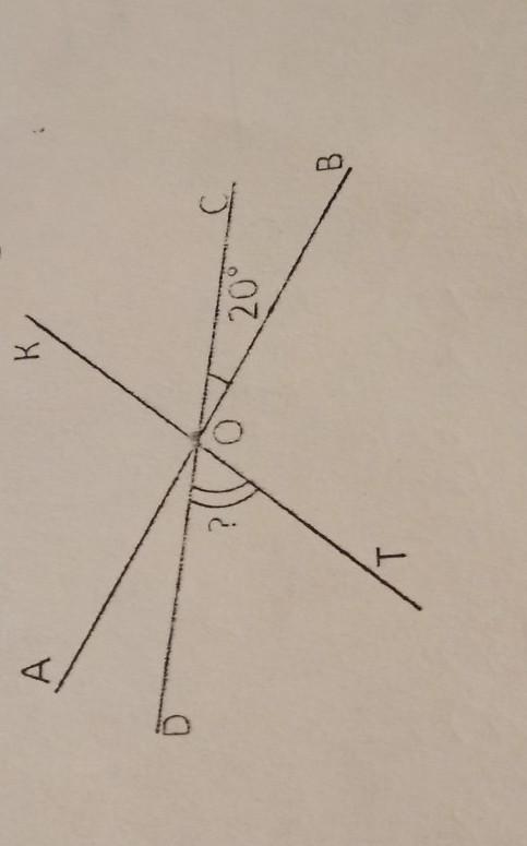 прямые AB иCD пересекаются в точке O.через точку O проведена прямая KT перпендикулярная АВ .Чему равна градусная мера угла DOT