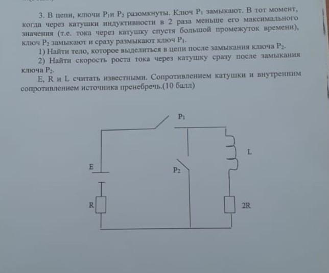 3. в цепи, ключи P1 и P2 разомкнуты. Ключ P1 замыкают. В тот момент, когда через катушки индуктивности в 2 раза меньше его максимального значения (т.е. тока через катушку спустя большой промежуток времени), ключ P2 замыкают и сразу размыкают ключ P1.