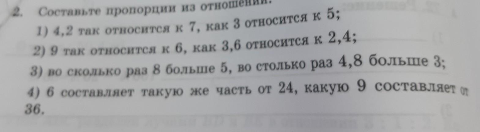 Ответ:4,2/7=3/5; (2) 9/6=3,6/2,4;(3) 8/5=4,8/3; (4) 6/24=9/36;
