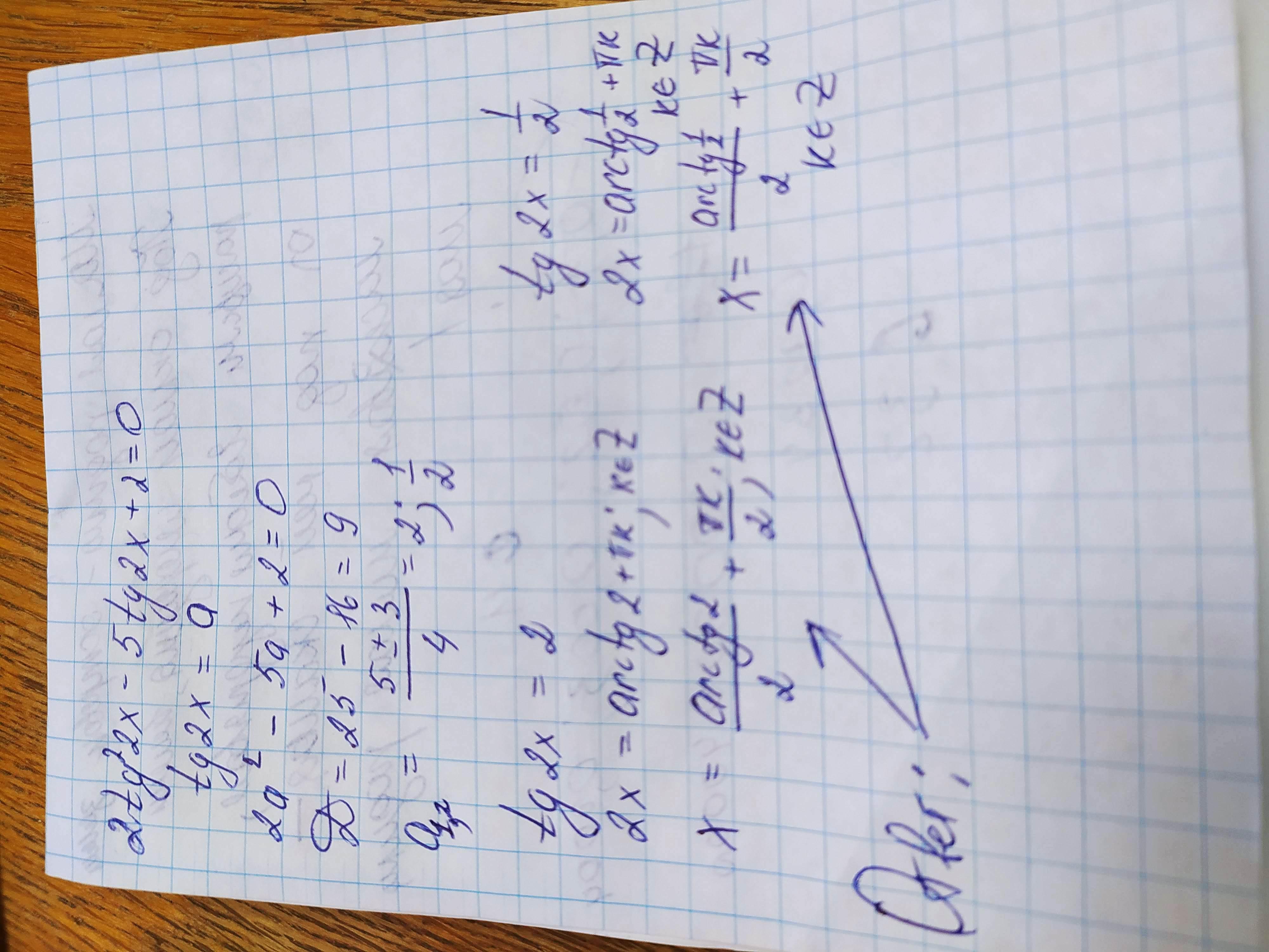 2tg²2x-5tg2x+2=0 решить уравнение.​