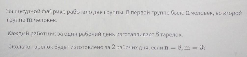 8*8 = 64 тарелок сделано у 1 группы за 1 день