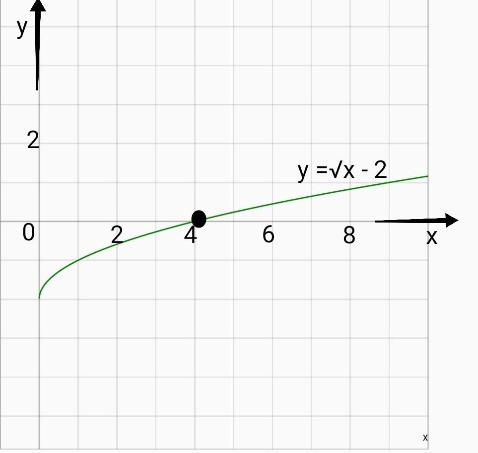 Постройте график функции у=√х-2. По графику определите значение функции,если значение аргумента равно 4.
