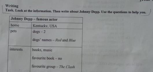 Johnny Depp live in Kentucky (USA). He has 2 dogs, which named Red and Blue. He interests reading books and listening music. He hasn't favourite book. He's favourite group is "The Clash"