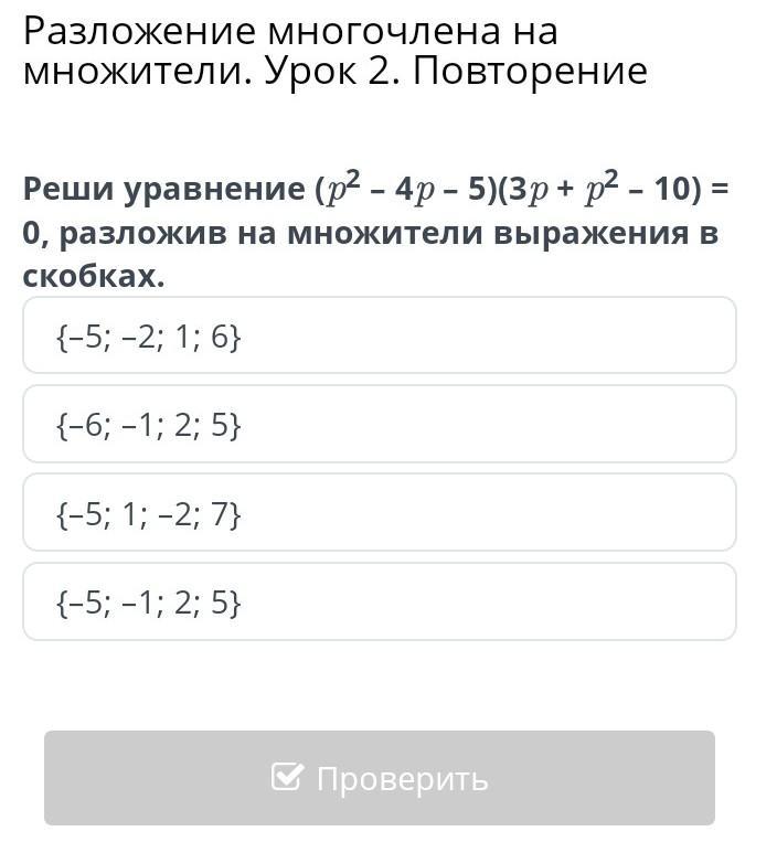 {–5; –1; 2; 5} помогите пж ток верно а то если нет то 3. уже будет пж срочно